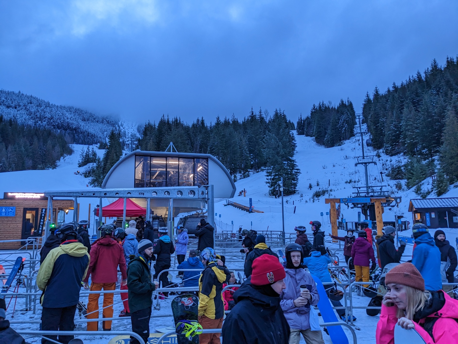 Creekside Gondola was very busy before opening: