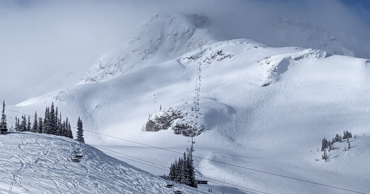 Directional light broke through the cloud cover all day, making what started as overcast feel more textured; visibility hovered around good-to-fair, with shafts of clarity on the main bowls. The...